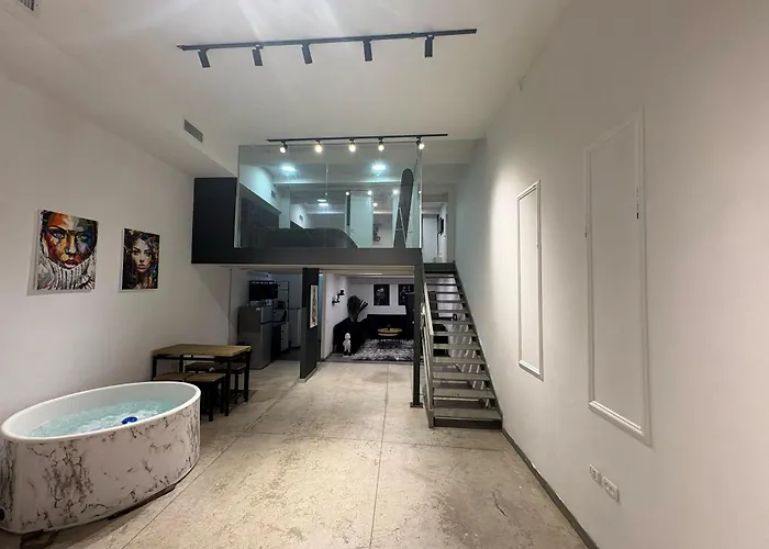Offering a private swimming pool, Vila Ocen Floor Tlv Tel Aviv apartment is located 6 minutes' walk from the Israeli theater "Gesher Theatre". This apartment with a hot tub is in the immediate vicinity of the early 20th-century Ottoman monument "Jaffa Clock Tower".